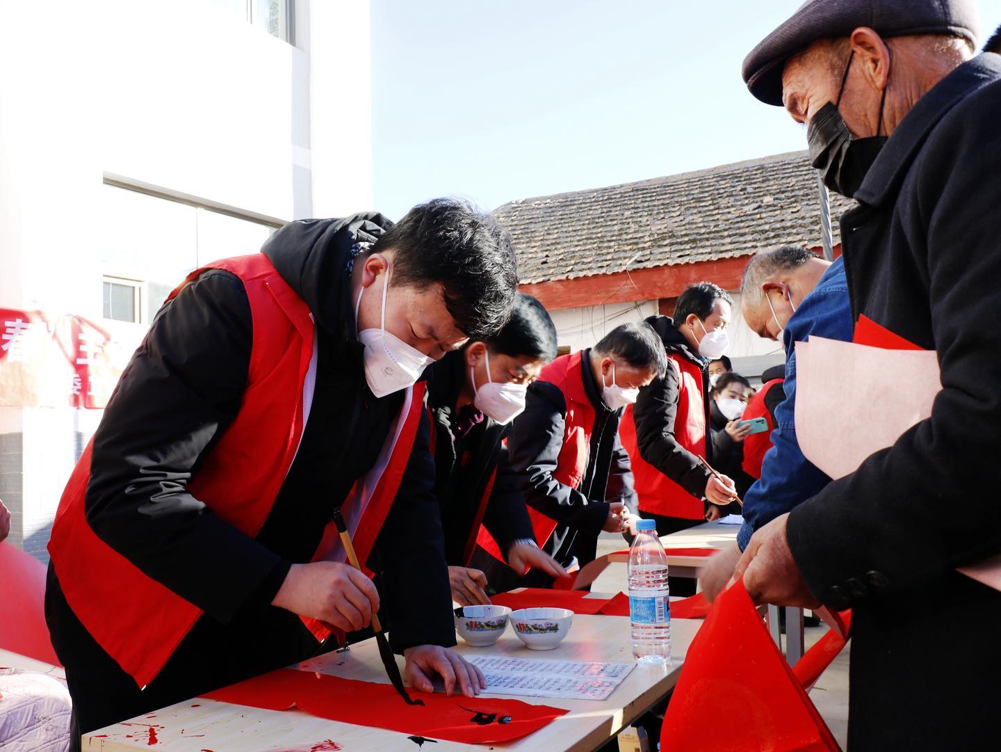 活動(dòng)現(xiàn)場,來自涼州區(qū)書法家協(xié)會(huì)、涼州區(qū)書畫院的文化志愿者們揮毫潑墨,筆尖游走于墨色與紅紙之間,以筆寄意、以字傳情,片刻間,一張張象征平安吉祥的"福"字、一副副謳歌黨的二十大、內(nèi)容文明健康的紅色喜慶春聯(lián),寄托著滿滿的新春祝福撲面而來?,F(xiàn)場群眾拿到自己心儀的春聯(lián)和"福"字,喜悅之情溢于言表?;顒?dòng)中,涼州區(qū)婦女聯(lián)合會(huì)、共青團(tuán)涼州區(qū)委等單位還開展了愛心捐贈(zèng)、公益診療、義務(wù)理發(fā)等志愿服務(wù)活動(dòng),為困難群體送上溫暖和健康。