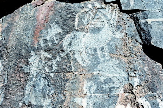 肅北縣大黑溝巖畫是全國重點文物保護單位,巖畫形成時間初步斷定在春秋、戰(zhàn)國至西漢時期,位于肅北縣城東約40公里處的大黑溝。巖畫共有34組,圖案190多幅,零亂分布在3.5公里長的山溝中,畫面內容多為射獵、放牧、練武、乘馬作戰(zhàn)等場景和北山羊、野牛、野駱駝等動物,畫面表現(xiàn)形式多以凹刻和凸刻,巖畫大多刻在避風向陽的陡峭花崗巖和石灰石上。