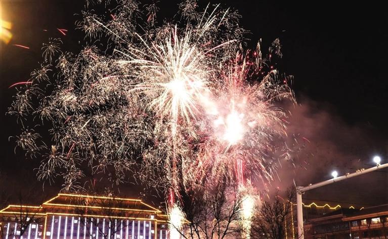 中國甘肅網(wǎng)1月30日訊 據(jù)蘭州晚報(bào)報(bào)道(記者 王萬盈 通訊員 包興鵬 文/圖)1月28日晚,白銀市白銀區(qū)兔年新春首波煙花秀“焰遇銀鳳·萬花迎春”在白銀區(qū)政府南側(cè)空地璀璨綻放。5000余發(fā)各式焰火在夜空中長達(dá)30分鐘美輪美奐的“表演”,在帶給圍觀群眾視覺盛宴的同時,也帶給人們無數(shù)有關(guān)春節(jié)的美好回憶。