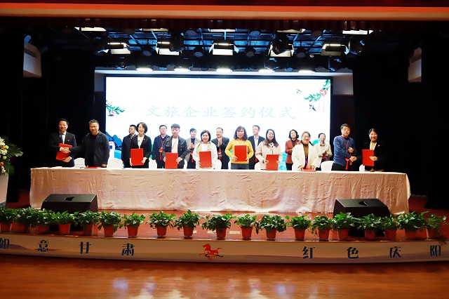 專(zhuān)題推介會(huì)上,由慶陽(yáng)市文體廣電和旅游局黨組書(shū)記、局長(zhǎng)郭麗君全面推介了慶陽(yáng)文化旅游資源,慶陽(yáng)旅游百事通國(guó)際旅行社總經(jīng)理毛永吉重點(diǎn)推介了慶陽(yáng)旅游精品線路;重慶山水國(guó)旅、陜西中國(guó)旅行社等川、渝、陜、青、寧等?。▍^(qū)、市)旅行社與慶陽(yáng)公共交通集團(tuán)旅行社、慶陽(yáng)文化旅游投資集團(tuán)北豳風(fēng)旅行社等20家旅行社,相互簽訂了“引客入甘肅游慶陽(yáng)”客源輸送及慶陽(yáng)旅游產(chǎn)品聯(lián)合開(kāi)發(fā)合作協(xié)議。推介環(huán)節(jié)還組織進(jìn)行了嗩吶演奏《沸騰的黃土地》、慶陽(yáng)民歌《送吉祥》、南梁說(shuō)唱傳統(tǒng)劇目《紅鳳先下山》以及民歌聯(lián)唱等極富隴東特色的文藝表演。推介會(huì)前,與會(huì)嘉賓還一起觀看了慶陽(yáng)文旅形象及招商項(xiàng)目圖片展、非遺文創(chuàng)產(chǎn)品展。甘肅省文旅廳有關(guān)處室和省內(nèi)外旅行商、文旅企業(yè)、媒體記者代表,慶城縣政府、慶陽(yáng)市重點(diǎn)景區(qū)、文旅企業(yè)等相關(guān)負(fù)責(zé)人共150余人參加。