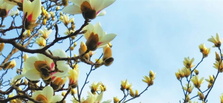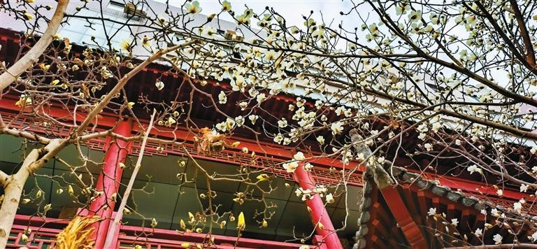 3月10日,記者途經(jīng)秦州區(qū)自由路玉蘭一條街時(shí)欣喜地看到,由東往西走,穿過刻有“秦風(fēng)在茲”的天水古城牌坊,滿巷漸次盛開的玉蘭花一樹樹玉樹臨風(fēng),一朵朵冰清玉潔。平房民居的屋頂上、脊獸斗拱邊,橫橫斜斜“躺臥”著若干膚白肌潤(rùn)的花朵,借景為鄰靜觀細(xì)瞧,人與花似感心意相通,片刻間也能生出不少情趣來。