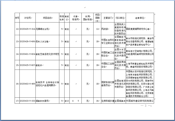 國家標準化管理委員會(以下簡稱國家標準委)發(fā)布《關于下達適老化改造推薦性國家標準專項計劃及相關標準外文版計劃的通知》(以下簡稱《通知》)。《通知》稱,為實施積極應對人口老齡化國家戰(zhàn)略,對照全國政協(xié)關于加快推進社會適老化改造的民主監(jiān)督事項,經研究,國家標準化管理委員會決定下達適老化改造推薦性國家標準專項計劃及相關標準外文版計劃(附后)。本批適老化改造領域推薦性國家標準專項計劃共計39項,其中制定35項、修訂4項。