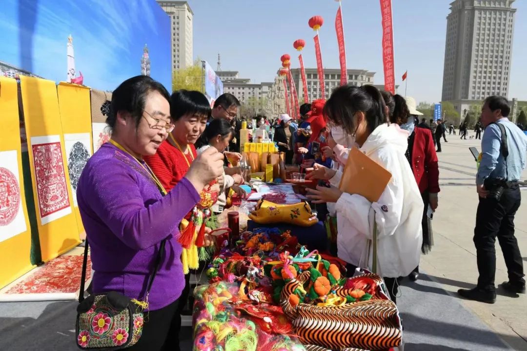 白銀市第五屆黃河風情文化旅游節(jié)啟動儀式上游客駐足觀賞展覽品。喬麗霞 攝