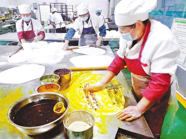 4月的蘭州,黃河兩岸花紅柳綠,永登縣城甘肅丁娃食品有限公司手工生產(chǎn)車(chē)間里,伴著一股天然的胡麻籽、玫瑰醬、香豆等混合的香氣,工人們正為一種傳統(tǒng)美食忙碌著。