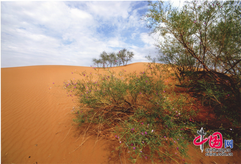 小小的“麥草方格”不僅阻止了流沙,防止了荒漠化,還加速了當(dāng)?shù)亟?jīng)濟(jì)的發(fā)展。“麥草方格”固沙法即:將廢棄的麥草呈方格狀鋪在沙面上,然后用鐵鍬軋進(jìn)沙中,留麥草的三分之一或一半立在四周,并在方格中植入治沙人經(jīng)九次試驗(yàn)成功培育出的花棒、檸條等沙生植物,腐爛干枯的麥草還作為肥料滋養(yǎng)植物的生長(zhǎng)。
