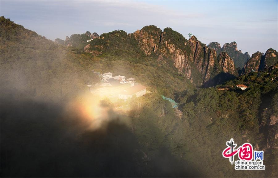 9月7日,安徽黃山風(fēng)景名勝區(qū)云霧飄渺仙氣飄飄,如同仙境,云霧在初升的陽光照射下,神奇的“佛光”景象出現(xiàn)在人們眼前,讓來黃山的游客大飽眼福,贊嘆大自然的鬼斧神功。