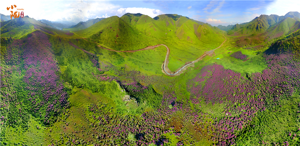 如火如荼綻放的紫色花朵是千里香杜鵑花,在當(dāng)?shù)赜直环Q(chēng)為枇杷花,每年五、六月份,正值高山杜鵑怒放,形態(tài)各異,色彩斑斕,形成了壯觀、獨(dú)特的高山花海景觀。