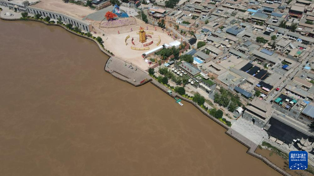 這是位于甘肅省蘭州市西固區(qū)黃河北岸的河口古鎮(zhèn)。河口古鎮(zhèn)歷史悠久、文化底蘊(yùn)深厚,現(xiàn)留存商賈碼頭、戰(zhàn)略要塞、交通樞紐等遺跡(7月9日攝,無(wú)人機(jī)照片)。新華社記者 陳斌 攝
