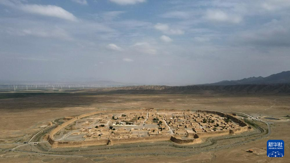 這是位于甘肅省白銀市景泰縣寺灘鄉(xiāng)的永泰古城。永泰古城始建于明萬(wàn)歷年間,為當(dāng)時(shí)的軍事要塞,因形似金龜,又名“永泰龜城”。古城城圍周長(zhǎng)1.7公里,高12米,2006年被命名為全國(guó)重點(diǎn)文物保護(hù)單位(7月11日攝,無(wú)人機(jī)照片)。新華社記者 方欣 攝