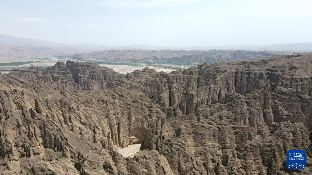 這是位于甘肅省白銀市景泰縣中泉鎮(zhèn)龍灣村的黃河石林景觀。黃河石林千峰競(jìng)奇、峽谷蜿蜒,與黃河遙相呼應(yīng),形成山環(huán)水轉(zhuǎn)、動(dòng)靜結(jié)合的自然奇觀(7月11日攝,無(wú)人機(jī)照片)。新華社記者 陳斌 攝