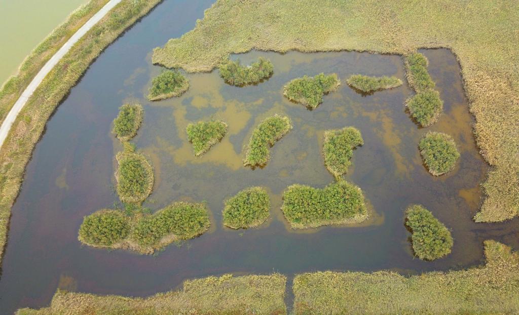 東營(yíng)黃河三角洲濕地景色(無人機(jī)照片)。新華社記者徐速繪 攝