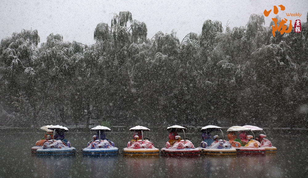 地上、樹上、屋頂上、亭子上……到處白雪皚皚,公園里像鋪了羊毛地毯似的。