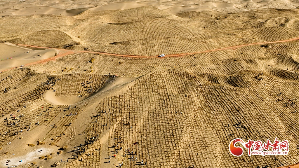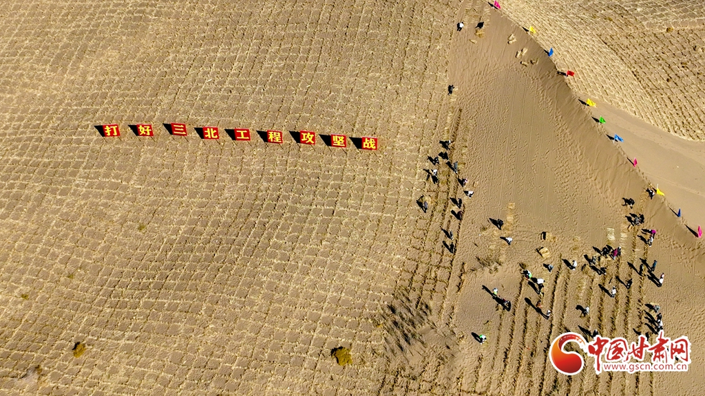 10月31日,河西走廊——塔克拉瑪干沙漠邊緣阻擊戰(zhàn)張掖區(qū)域戰(zhàn)役正式啟動(dòng),張掖市千名市民來(lái)到高臺(tái)縣巴丹吉林沙漠南緣西沙窩風(fēng)沙口治理區(qū)共同義務(wù)壓沙障。