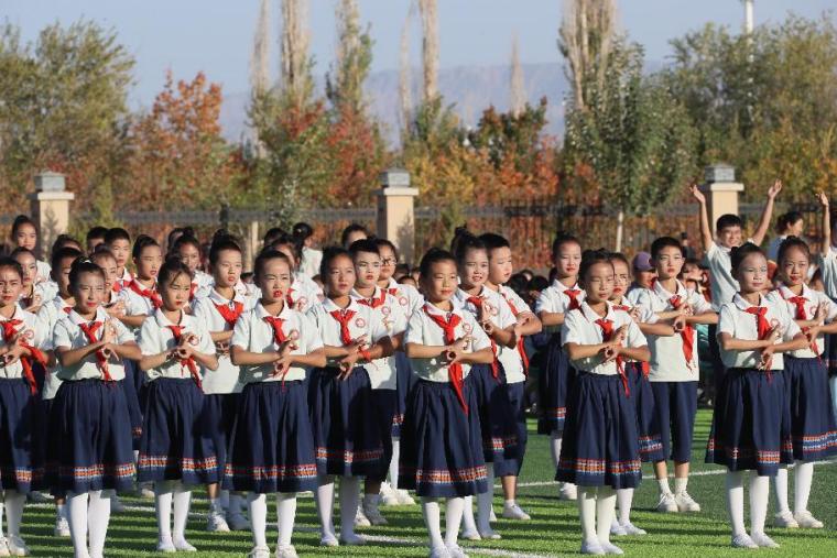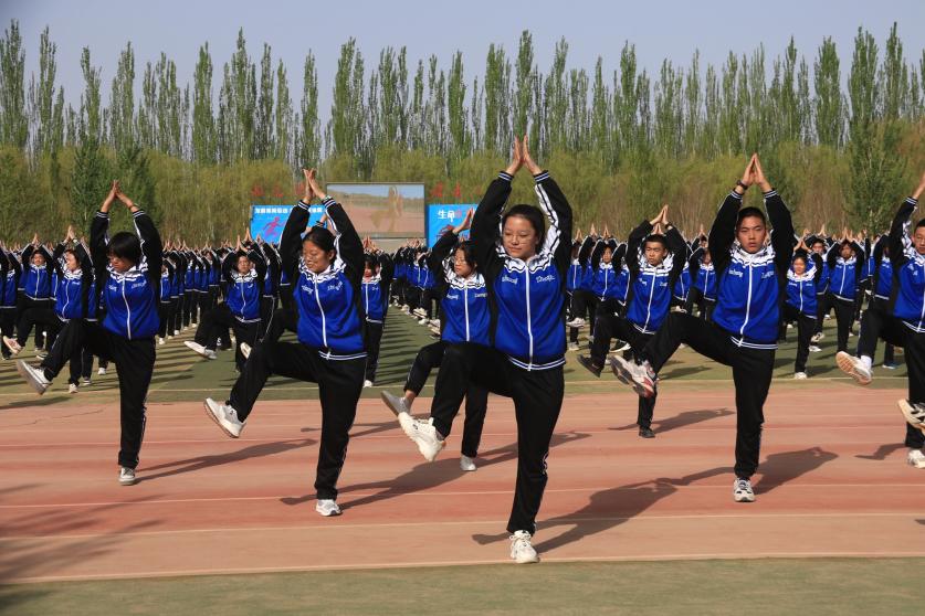 敦煌中學學生在操場做敦煌舞課間操。張曉亮 攝