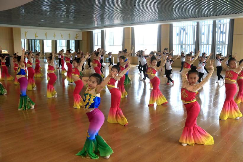 敦煌市西關小學舞蹈社團的學生練習敦煌舞。張曉亮 攝
