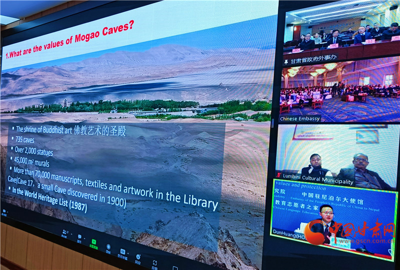 中國甘肅網(wǎng)12月4日訊(西北角·中國甘肅網(wǎng)記者 宋芳科 )12月4日,“敦煌文化環(huán)球連線——走進尼泊爾”在蘭州、敦煌、尼泊爾三地線上線下同步舉辦。中國駐尼泊爾大使陳松、尼泊爾教育與科技部部秘普拉米拉·黛維·巴吉拉恰利亞,酒泉市委常委、敦煌市委書記石琳、尼泊爾藍毗尼文化市市長薩魯丁·穆薩爾曼等應邀出席活動并講話,活動由甘肅省政府外事辦主任張寶軍主持。