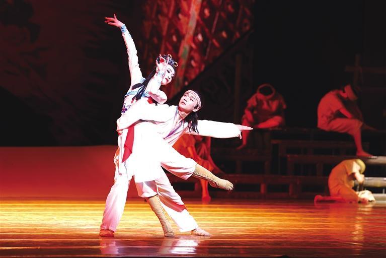經(jīng)典舞劇《大夢(mèng)敦煌》是一部富于傳奇色彩的四幕舞劇,首演至今,已獲得中宣部“五個(gè)一工程”獎(jiǎng)、中國(guó)舞蹈“荷花獎(jiǎng)”、中國(guó)“文華獎(jiǎng)”等多個(gè)獎(jiǎng)項(xiàng),被譽(yù)為中國(guó)原創(chuàng)舞劇中的頂級(jí)之作,民族舞劇的經(jīng)典之作。當(dāng)晚,集故事美、音效美、舞美美、表演美于一身的《大夢(mèng)敦煌》,以一場(chǎng)淋漓盡致、亦夢(mèng)亦幻的完美演出,收獲了現(xiàn)場(chǎng)觀眾經(jīng)久不息的掌聲。圖為演出現(xiàn)場(chǎng)。