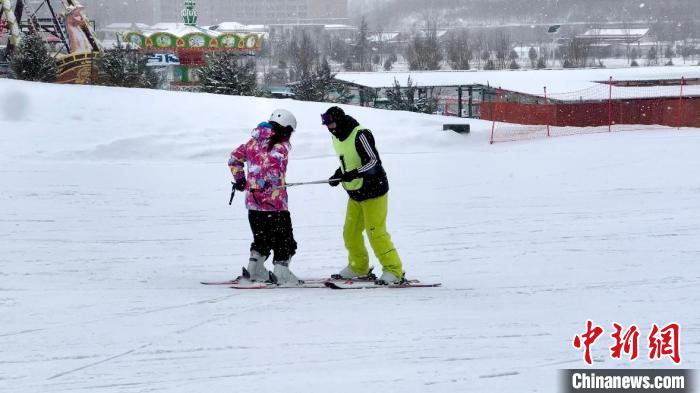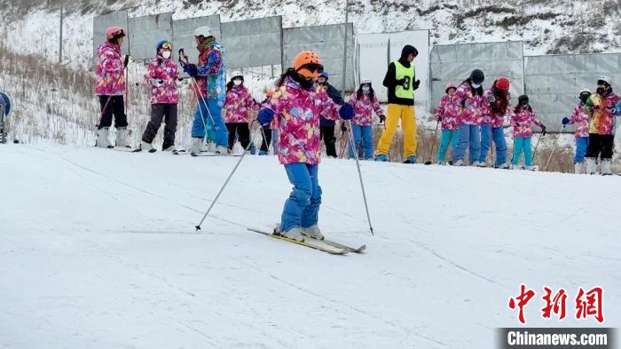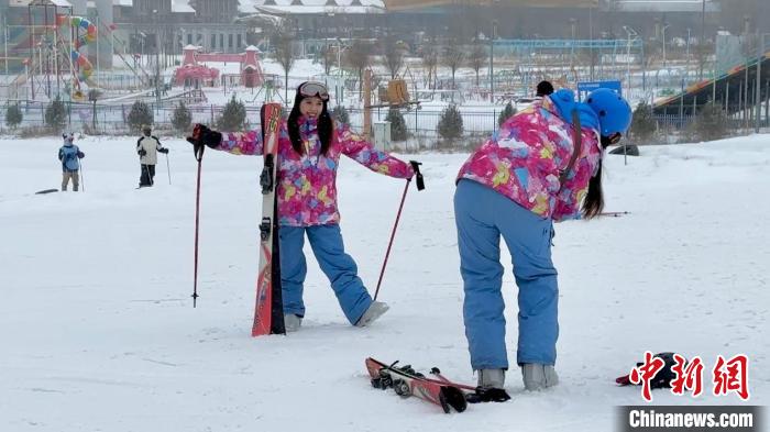 圖為滑雪教練對臺胞青年進行首次滑雪前的培訓。王牧雨 攝