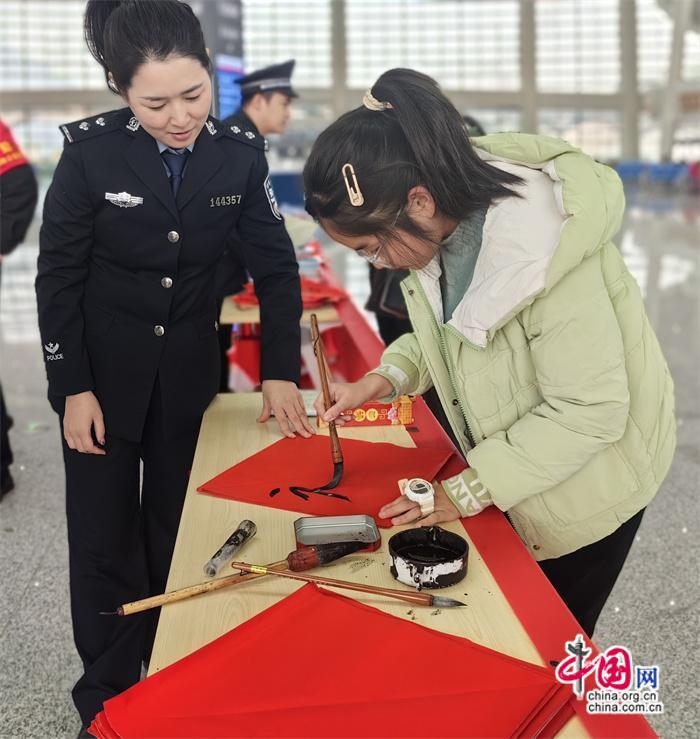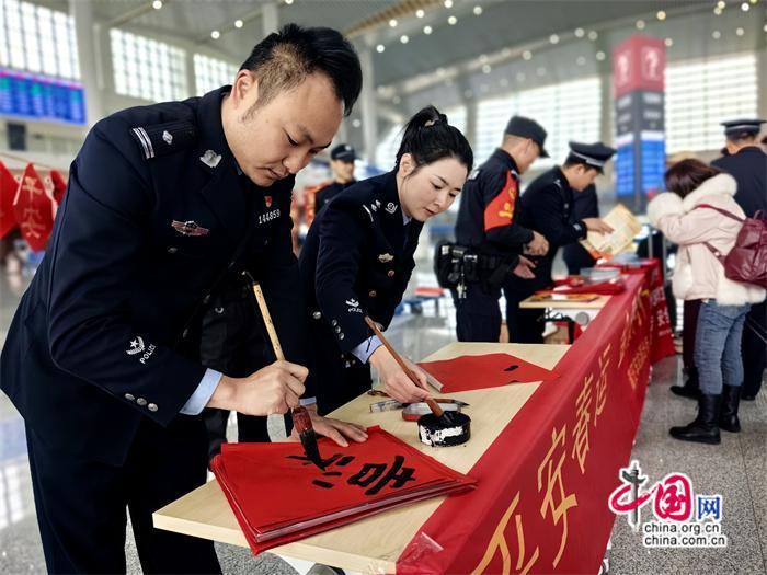 本次活動(dòng)由莆田車站派出所牽頭組織,聯(lián)合中信銀行、莆田站共同開(kāi)展。活動(dòng)期間,民警與志愿者在莆田站甬廣場(chǎng)候車室為旅客發(fā)放高鐵安全宣傳單及春聯(lián),并由青年民警現(xiàn)場(chǎng)書寫春聯(lián)、福字送給來(lái)往旅客,將平安、溫馨傳遞給每一個(gè)人。