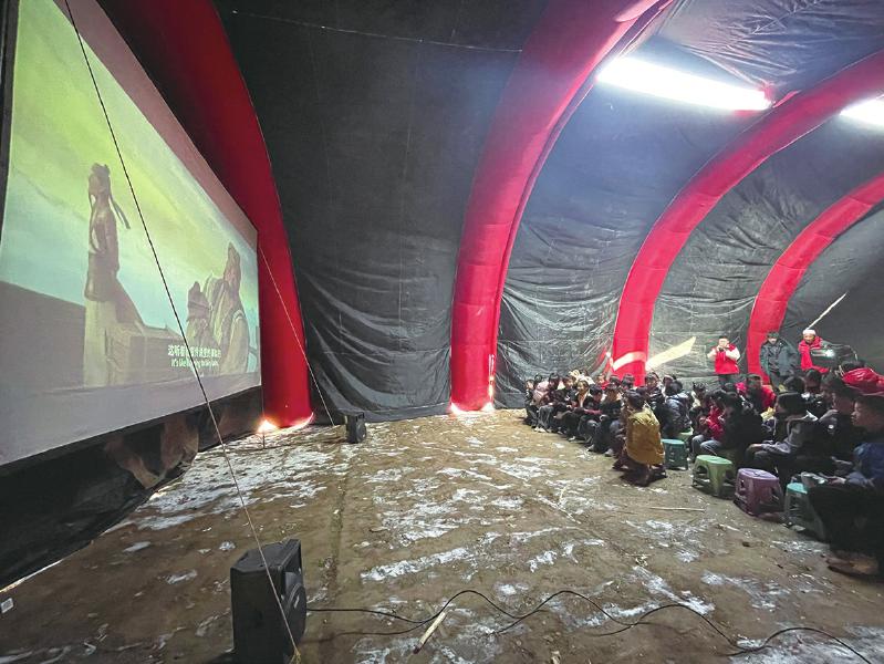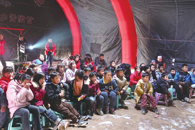 冬日的嚴(yán)寒擋不住震區(qū)群眾的觀影熱情。帳篷內(nèi),電影《英雄若蘭》《新神榜:楊戩》先后放映,孩子們分排而坐,被影片生動(dòng)有趣、跌宕起伏的情節(jié)深深吸引,不時(shí)傳出歡聲笑語(yǔ)。“志愿者給我們放電影,豐富了我們的文化生活。”正在觀影的村民呂鵬說。