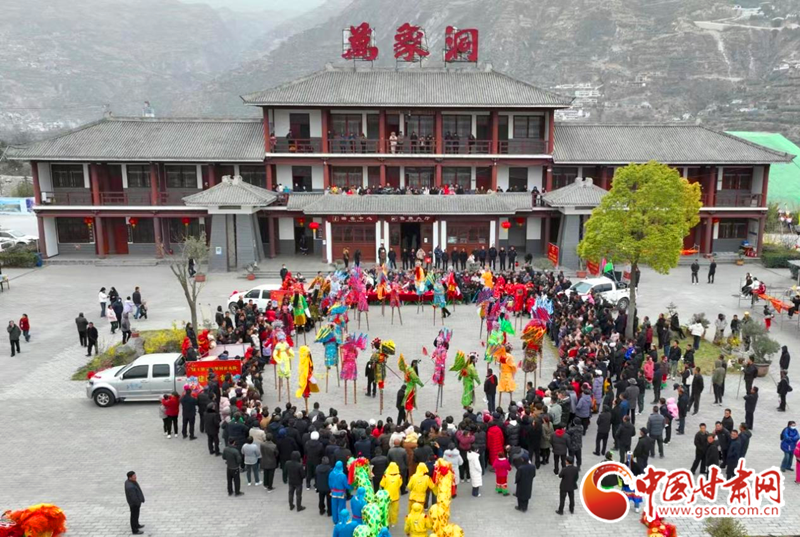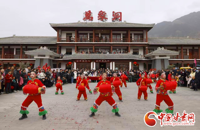 2024年2月21日,在甘肅省隴南市國家AAAA級景區(qū)——武都區(qū)萬象洞風景名勝區(qū),當?shù)厝罕娊M織的社火表演隊正在演出。