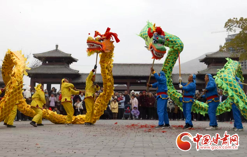 為促進文化和旅游融合發(fā)展,春節(jié)期間,隴南市組織了多場文藝活動進景區(qū)活動,當?shù)厝罕娊M織的舞獅子、舞龍、踩高蹺等傳統(tǒng)社火紛紛走進相鄰景區(qū)進行表演,推進文化與旅游深度融合發(fā)展。
