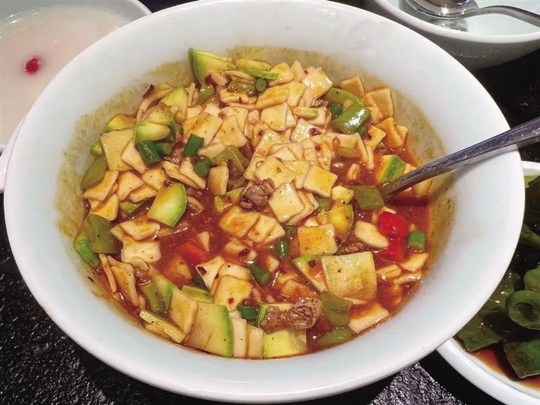 有固態(tài)和液態(tài)兩種形式,酸甜麻辣搭配油潑辣子,直接擊穿饑餓。蘭州炒面片,面片也是蘭州人喜歡的家常面之一,面片分帶湯和不帶湯的,不帶湯的稱炒面片,蘭州炒面片也是一道風(fēng)味獨特的美食,無論是大街小巷還是酒店飯館都有它的一席之地,面片炒的柔韌筋道,番茄炒出的湯汁兒酸酸甜甜,多種蔬菜炒出的營養(yǎng)美味,秘制油潑辣子的香,酸甜麻辣香都集齊了,再搭配上筋道的牛腱子肉、虎皮辣椒,麻辣香美可謂一絕。