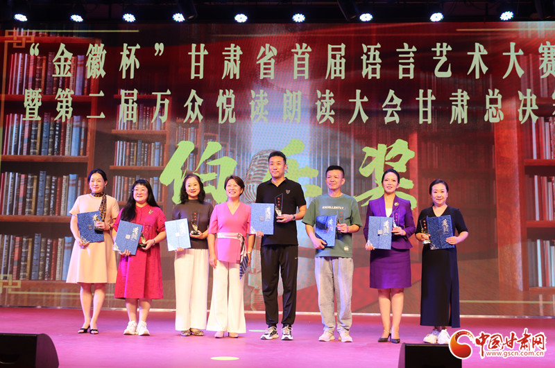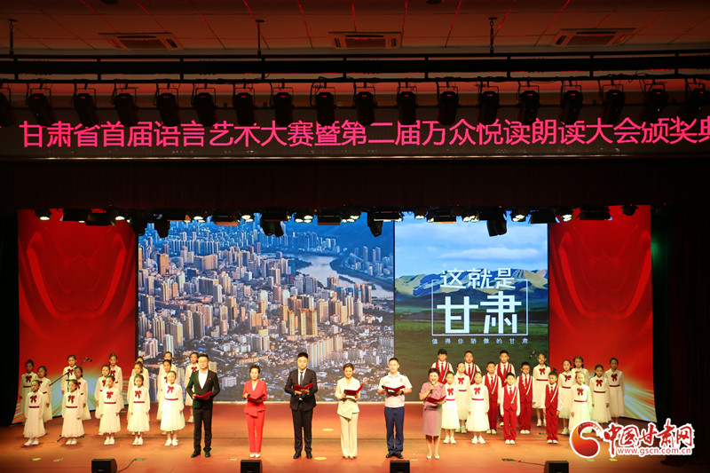 在展演環(huán)節(jié),參賽選手們用豐富多彩的語言表演形式,聲情并茂的舞臺(tái)演繹,為觀眾呈現(xiàn)了一場(chǎng)精彩絕倫的視聽盛宴,贏得了現(xiàn)場(chǎng)觀眾經(jīng)久不息的掌聲,頒獎(jiǎng)儀式在合誦《這就是甘肅》中落下帷幕。