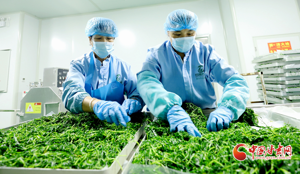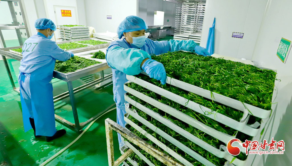8月8日,臨澤縣沙河鎮(zhèn)一麥苗凍干粉生產(chǎn)線上,工作人員正在進(jìn)行分揀、清洗、高溫漂燙、翻晾裝盤、凍干研磨等生產(chǎn)工序,完成廣東、福建、上海、浙江等地客商的訂單。