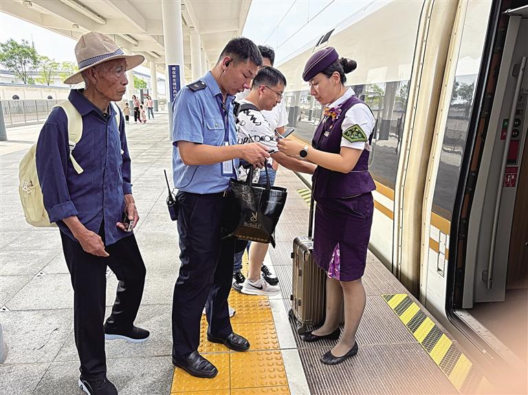 銀西高鐵開通4年,不僅改變了革命老區(qū)慶陽百姓的出行方式,更改變了老區(qū)的產(chǎn)業(yè)結(jié)構(gòu),越來越多的人選擇乘坐高鐵到慶陽旅游、追尋革命先輩的事跡。今年是慶陽站開站后的第4個暑運,劉鑫、楊澤和身邊的同事,始終秉承“待旅客如親人”的服務(wù)理念,在工作中以“多看一眼、多問一句、多走一步”的工作標準,周到細致地服務(wù)老區(qū)人民。