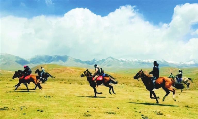 幾百匹賽馬組成的馬隊(duì)表演方陣,像團(tuán)團(tuán)移動的彩云貼地而來,馬兒昂首蒼穹,嘯嘯歡鳴,圍觀的人群發(fā)出陣陣歡呼,這是草原人對馬的情感最熱烈的釋放。