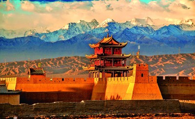 雄關(guān)六百載,長城越千年??唇癯瓯谥?,嘉峪關(guān)關(guān)城的朱色城樓與終年皚皚的祁連雪峰交相輝映,歷經(jīng)風(fēng)霜久而彌堅(jiān);峭壁之巔,長城第一墩矗立于此,腳下流淌的討賴河水澎湃不息;山脊之上,懸壁長城形似凌空倒掛,氣勢雄偉。