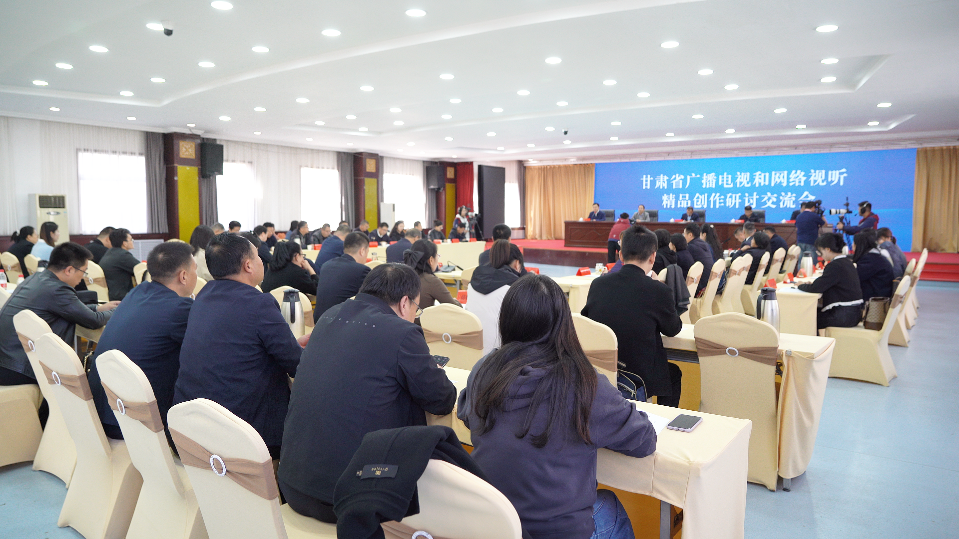 省廣電局、省廣電總臺相關(guān)部門負(fù)責(zé)人,各市(州)、甘肅礦區(qū)文化廣電和旅游局負(fù)責(zé)同志,各市(州)、甘肅礦區(qū)、蘭州新區(qū)融媒體中心,平?jīng)鍪兴鶎倏h級融媒體中心負(fù)責(zé)同志及采編人員;部分廣播影視制作經(jīng)營機構(gòu)、網(wǎng)絡(luò)視聽新媒體平臺負(fù)責(zé)同志和編劇、導(dǎo)演、拍攝等創(chuàng)作人員以及省廣電總臺廣播新聞中心和電視新聞中心、新甘肅、視聽甘肅、中國甘肅網(wǎng)等媒體記者共70余人參加相關(guān)活動。