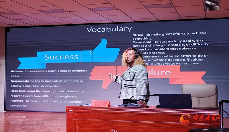 外籍教師Catherine Seda(凱瑟琳-塞達(dá))以其深厚的英語專業(yè)素養(yǎng)和生動(dòng)的學(xué)習(xí)和生活情境,為在場(chǎng)的師生們帶來了一場(chǎng)語言學(xué)習(xí)盛宴,激發(fā)了同學(xué)們對(duì)英語學(xué)習(xí)的濃厚興趣。