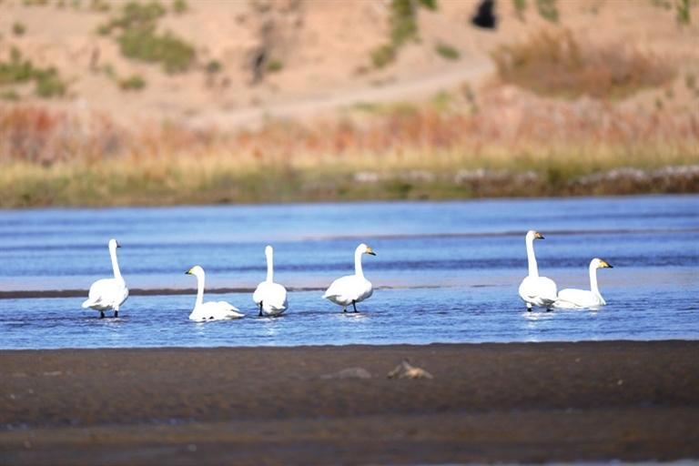 近日,高臺縣黑河濕地多次監(jiān)測到大天鵝種群,它們的翩翩降臨,標(biāo)志著天鵝一年一度的越冬之旅正式開啟。 大天鵝是雁形目鴨科天鵝屬鳥類,又稱黃嘴天鵝,全身潔白,僅頭稍沾棕黃色;喙黑色,上喙基部黃色,喙端黑色;跗跖、蹼、爪也為黑色,是國家二級保護動物。天鵝對棲息地的選擇極為苛刻,它們的到來是高臺縣黑河濕地生態(tài)環(huán)境質(zhì)量優(yōu)良的有力證明。