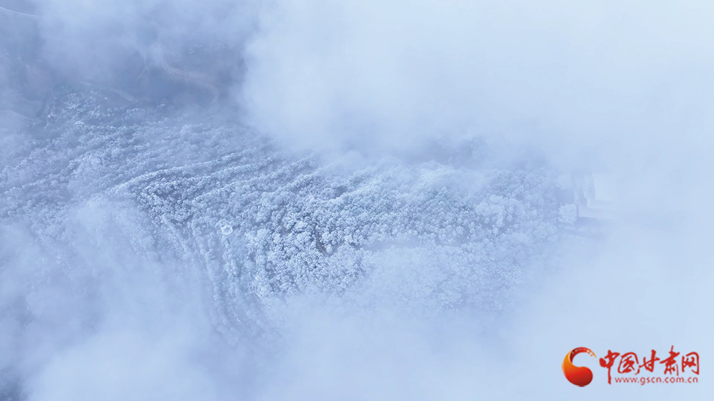 從高空俯瞰,云海之中霧凇景觀蔚為壯觀,連綿起伏的山巒美如仙境??~緲的云霧似輕紗流淌涌動(dòng),漫過(guò)靜謐的山林,好似一幅如夢(mèng)似幻的水墨畫卷。