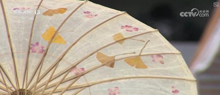 在最佳觀賞期來到村子里,游客朋友們還能看到和銀杏相關的非物質文化遺產。這是已經傳承了300多年的騰沖傳統(tǒng)非遺——油紙傘。這把傘在制作階段,就將銀杏葉放入了宣紙之間。打起油紙傘,就仿佛銀杏葉落在了傘上,充滿意趣。