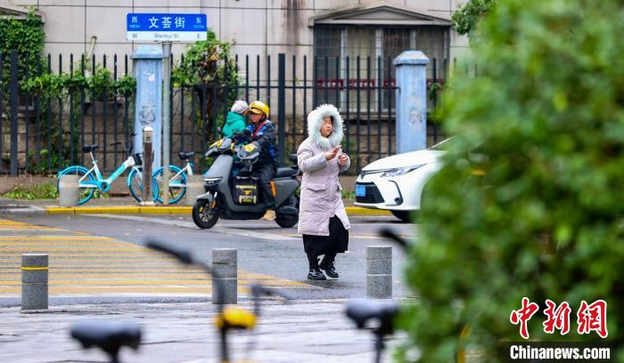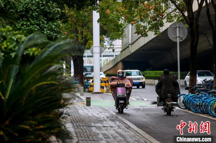 11月25日,市民在街頭出行。當日,武漢受寒潮天氣影響,氣溫下降明顯。武漢市氣象臺24日18時27分發(fā)布寒潮藍色預(yù)警信號,受較強冷空氣影響,預(yù)計24日至26日,武漢最低氣溫降幅達7℃~9℃。中新社記者 張暢 攝