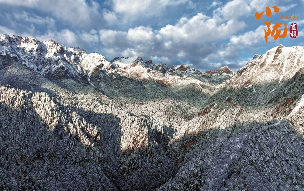 積雪如同軟綿綿的地毯鋪滿(mǎn)了整個(gè)官鵝溝,陽(yáng)光透過(guò)云層照射在這片被雪覆蓋的世界,閃爍著溫柔的光芒。