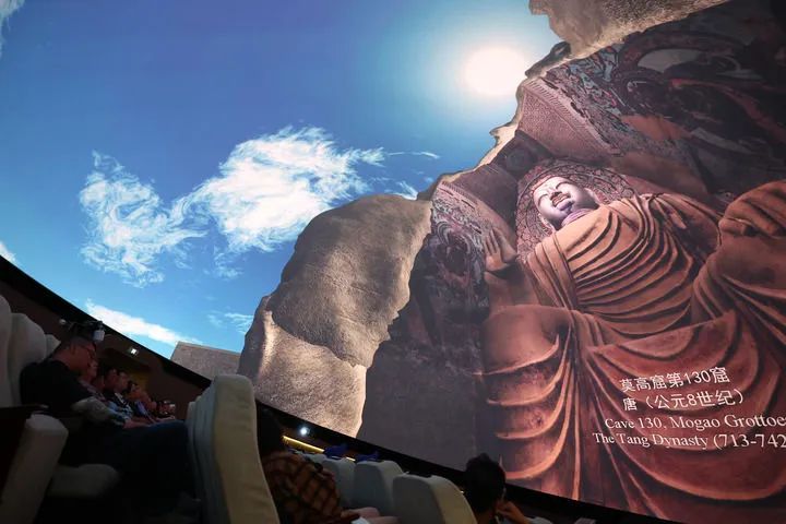2024年9月4日,游客在莫高窟數(shù)字展示中心觀看球幕電影《夢(mèng)幻佛宮》。新華社記者 陳斌 攝