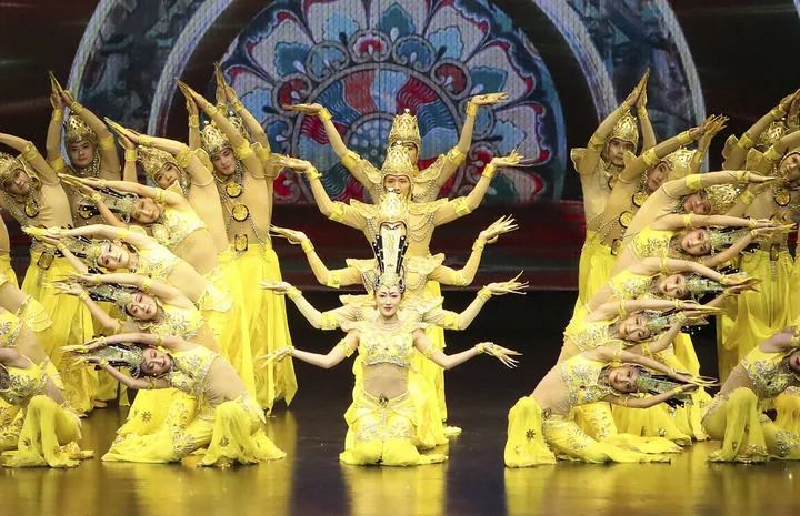 2024年9月20日,演員在第七屆絲綢之路(敦煌)國(guó)際文化博覽會(huì)舉行期間表演大型情景音畫(huà)劇《千手千眼》。新華社記者 郎兵兵 攝