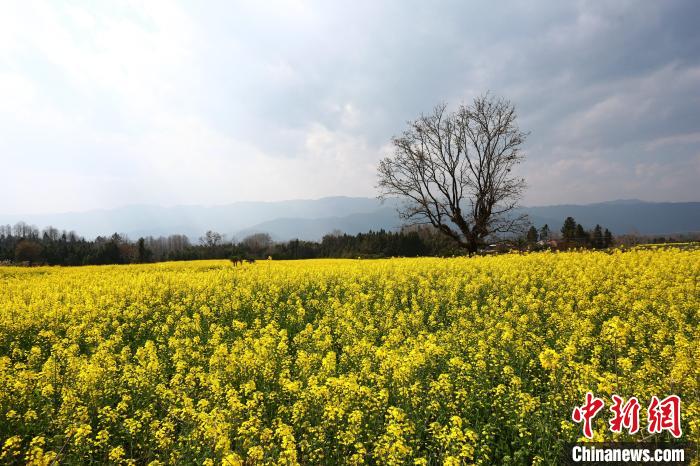 近日,云南省騰沖市界頭鎮(zhèn)成片的油菜花盛開,吸引不少游客前來觀光。金黃的油菜花海與遠(yuǎn)處白墻黛瓦的村落相映成趣,共同繪就一幅寫意的水墨畫。圖為油菜花盛放。趙輝  攝