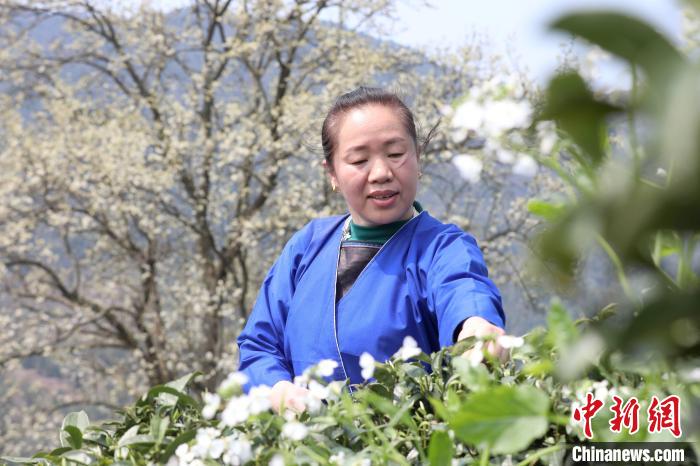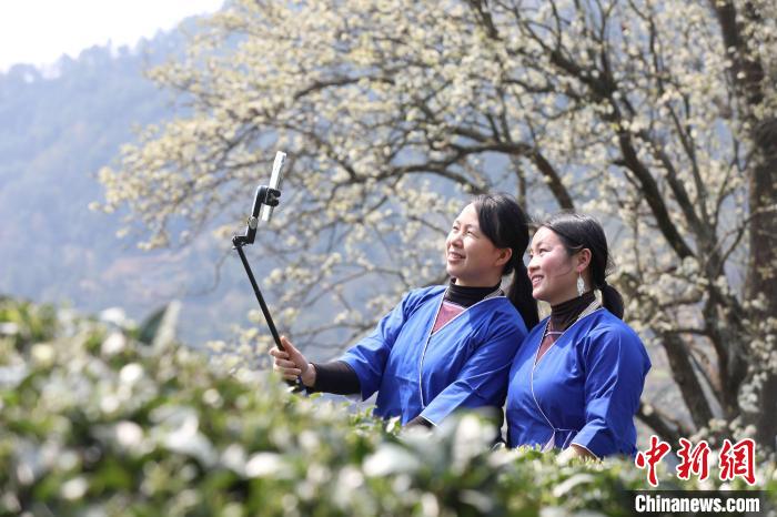 3月16日,廣西三江侗族自治縣八江鎮(zhèn)歸令村六更屯種植的千樹梨花迎春綻放,與青翠茶園、特色民居相映成趣,構(gòu)成一幅如詩如畫的春日畫卷。當(dāng)?shù)卮迕窦坝慰图娂娗皝聿刹栀p花、“打卡”拍照,享受春日美好時光。圖為村民在采春茶。龔普康 攝