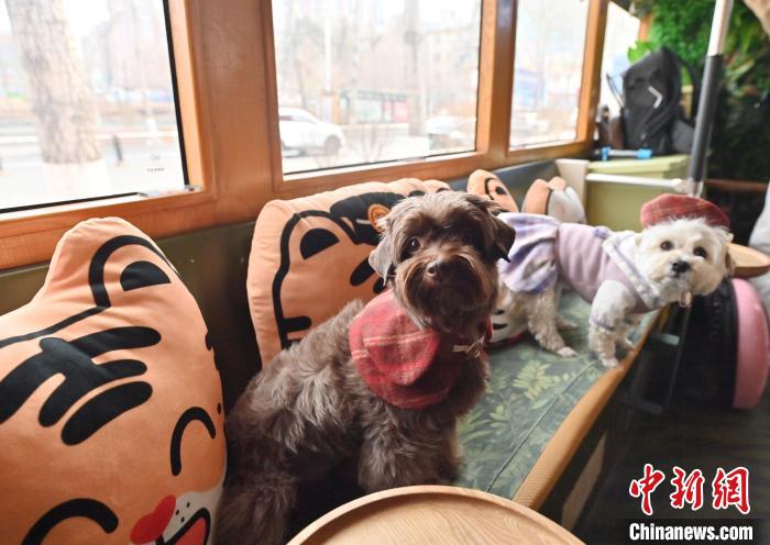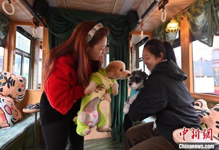 3月16日,吉林長春,寵物們在車廂內(nèi)親密互動(dòng)。中新社記者 張瑤 攝