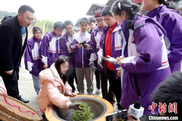 3月15日至16日,廣西柳州市一所中學(xué)組織千人研學(xué)團(tuán)到三江侗族自治縣八江鎮(zhèn)布央村仙人山景區(qū)開(kāi)展茶文化研學(xué)活動(dòng),沉浸式采春茶、炒春茶、品春茶,深入了解茶種植、茶制作、茶文化、茶品鑒等知識(shí),進(jìn)一步培養(yǎng)實(shí)踐能力、提高勞動(dòng)素養(yǎng)。圖為研學(xué)活動(dòng)現(xiàn)場(chǎng)。龔普康 攝