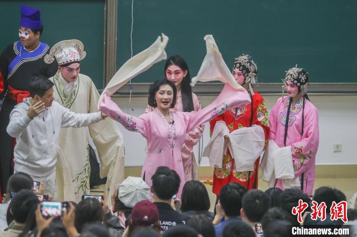 2024年3月,江西南昌,南昌大學贛劇藝術鑒賞課堂上,國家級非物質文化遺產代表性項目“贛劇”代表性傳承人陳俐正在給學生上課。(資料圖)劉力鑫 攝