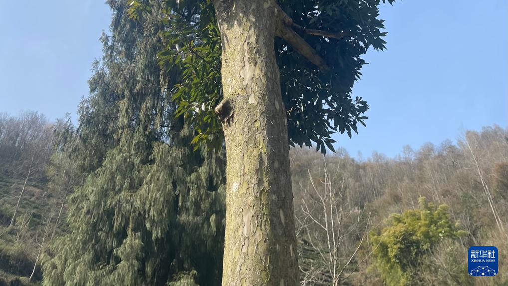 文縣中廟鎮(zhèn)茶園村的老鷹茶樹,經測量樹徑周長1.2米。新華社記者李杰 攝