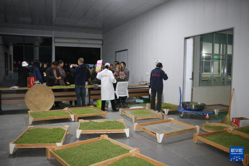 中廟鎮(zhèn)溢品茗茶葉加工廠收購當?shù)夭柁r茶葉鮮葉。新華社記者李杰 攝
