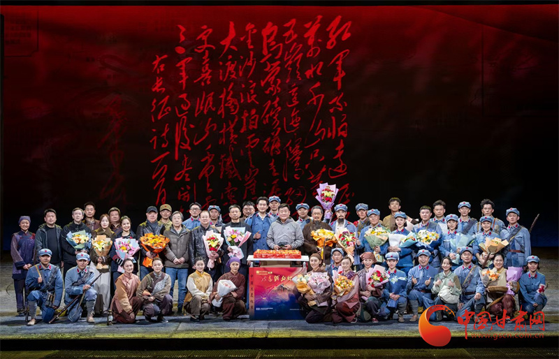 演出當晚,舞臺上的燈光、道具與演員的精湛表演完美融合。逼真的場景布置,瞬間將觀眾帶回到1935年紅軍長征到達哈達鋪的那段波瀾壯闊的歲月。演員們?nèi)硇耐度耄總€人物都被演繹得淋漓盡致,憑借對角色深入研究與情感投入,讓觀眾看到了鮮活生動的革命先輩。