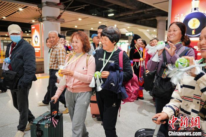 唱著山歌游廣西 三月三專列載千名游客抵達(dá)南寧